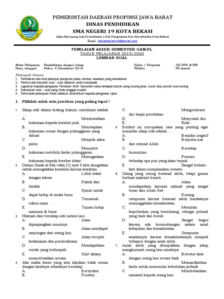 Semester 2 di kelas 5 biasanya mencakup materi-materi penting yang membangun pemahaman siswa tentang ajaran Islam, seperti pentingnya menuntut ilmu, mengenal lebih dalam tentang Nabi Muhammad SAW dan para sahabatnya, memahami rukun iman dan Islam secara lebih mendalam, serta praktik ibadah sehari-hari. Untuk membantu siswa kelas 5 dan para pendidik dalam mempersiapkan diri, artikel ini akan menyajikan kumpulan contoh soal UAS Agama Islam kelas 5 semester 2, lengkap dengan berbagai tipe soal dan sedikit penjelasan mengenai cakupan materinya.