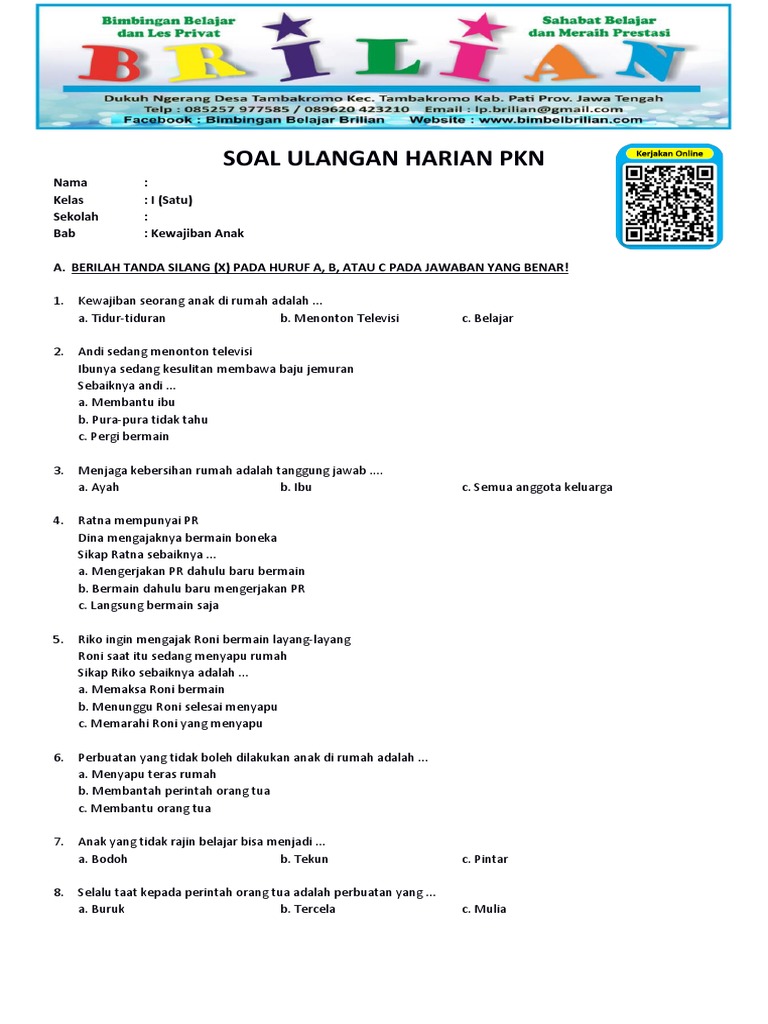 Ini adalah jenis soal yang paling umum. Siswa diminta memilih satu jawaban yang paling tepat dari beberapa pilihan yang tersedia.